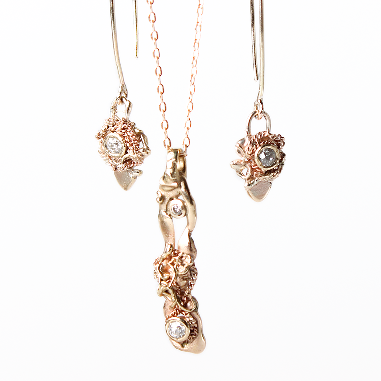 Maya's ethos of sustainability, zero-waste and originality is as important for these pieces of jewellery as for her other work.